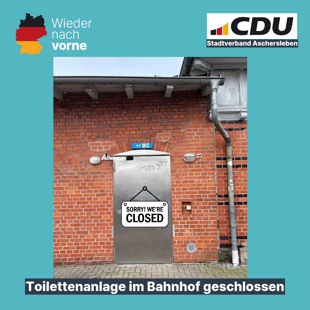 Erneut wurde die Toilettenanlage im Bahnhof Aschersleben durch Vandalismus beschädigt und musste geschlossen werden. Damit steht sie Fahrgästen und Besuchern unserer Stadt derzeit nicht zur …