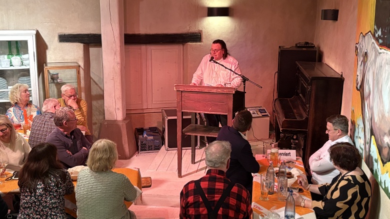 Der politische Aschermittwoch ist mittlerweile eine lieb gewonnene Tradition, die wir seit vielen Jahren ausrichten. Auch in diesem Jahr war der Graue Hof wieder bestens besucht, als Gastredner Stephen Gerhard Stehli ans Rednerpult trat. Er berichtete humorvoll von seinen Erfahrungen als amerikanischer Teenager in Deutschland und was es alles brauchte, um in diesem Land richtig anzukommen.